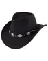Crafted from 100% wool felt, this hat is crushable, water-resistant, and tough enough to take a beating while holding its shape. The 4-inch teardrop crown and 3-inch curved brim provide classic western styling with just the right amount of attitude. A concho hatband adds a rugged finish, while the cotton sweatband ensures a comfortable fit from sunup to sundown.